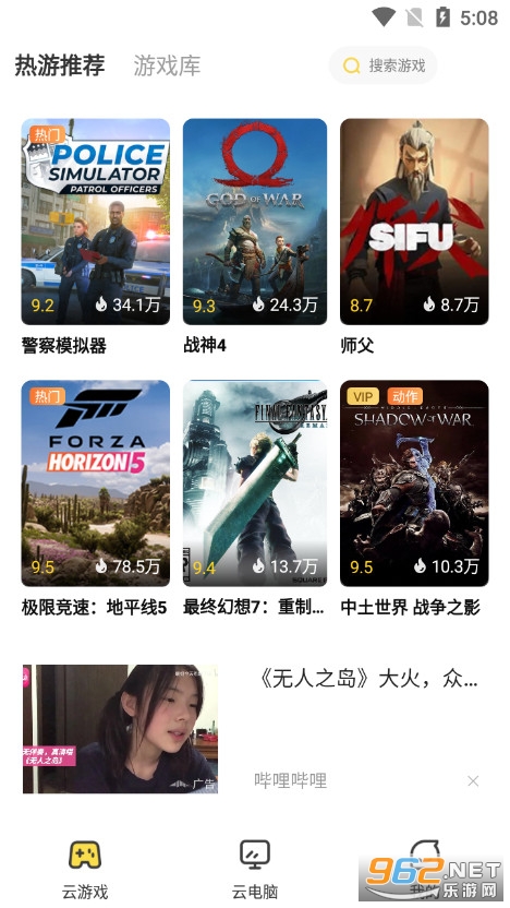 超级好玩的一款云游戏平台,里面的功能十分的丰富,游戏资源众多,无需下载安装,无需账号,无需更新,你可以在这里随时随地玩你想玩的游戏,手机上畅玩各种pc游戏大作!