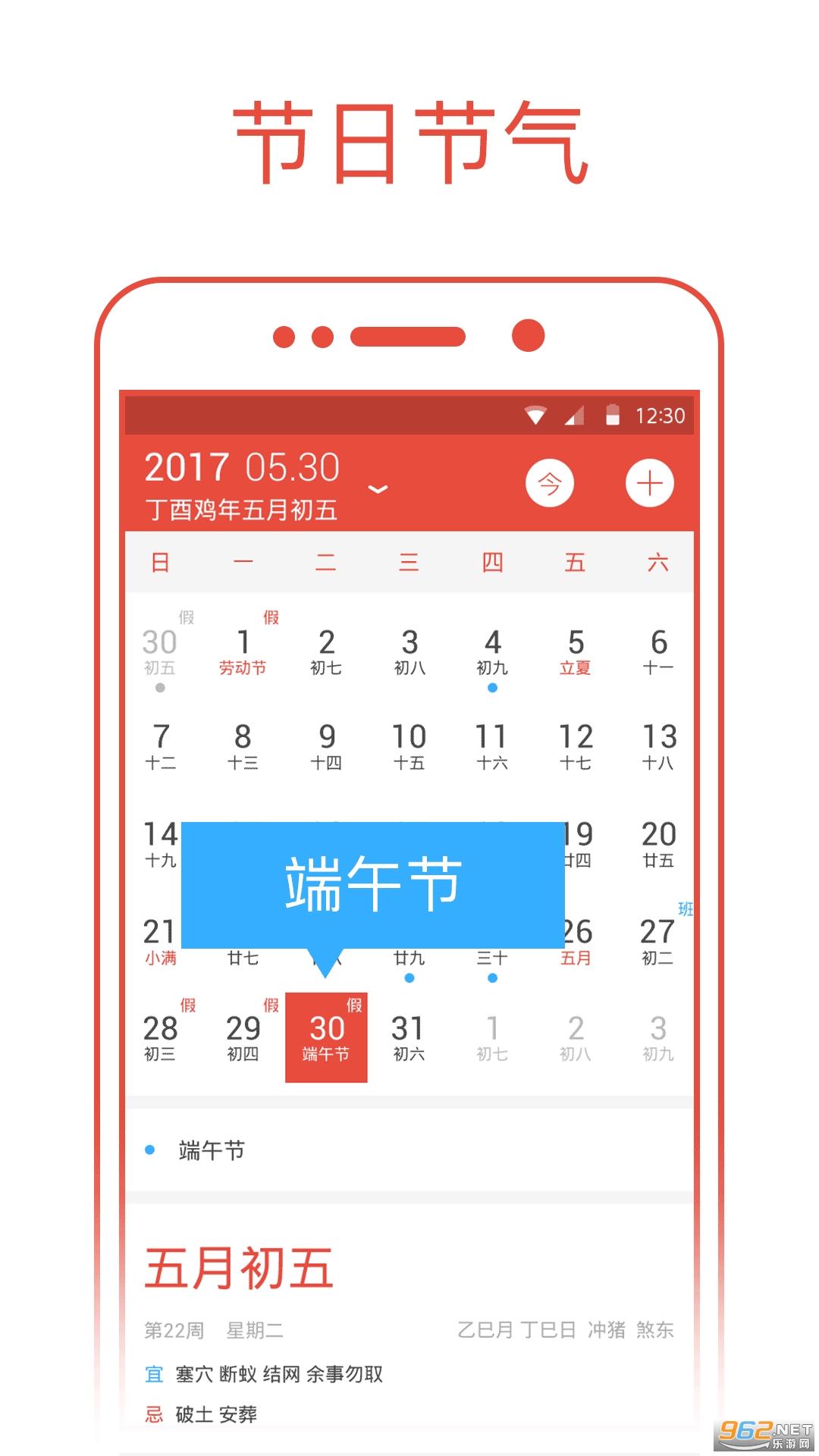 2)节日和节气:国内外传统节日和中国的二十四节气日期标注提醒,还有国家法定节假日上班时间调整,更有详细的科普介绍;