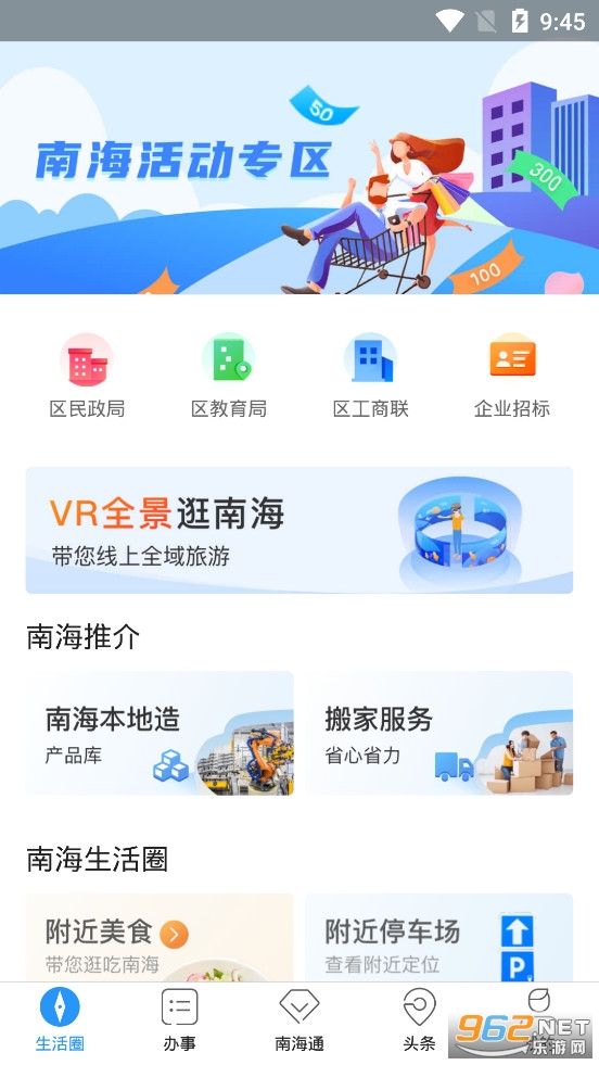 《南海通app》是佛山市南海区大数据投资建设有限公司推出的一款南海综合服务平台,南海的朋友可以在南海通app中办理业务,查询各种信息等,软件有着生活圈、办事、南海通、头条和我的多个栏目,可以在自己需要的栏目去使用一些功能,提供便利。