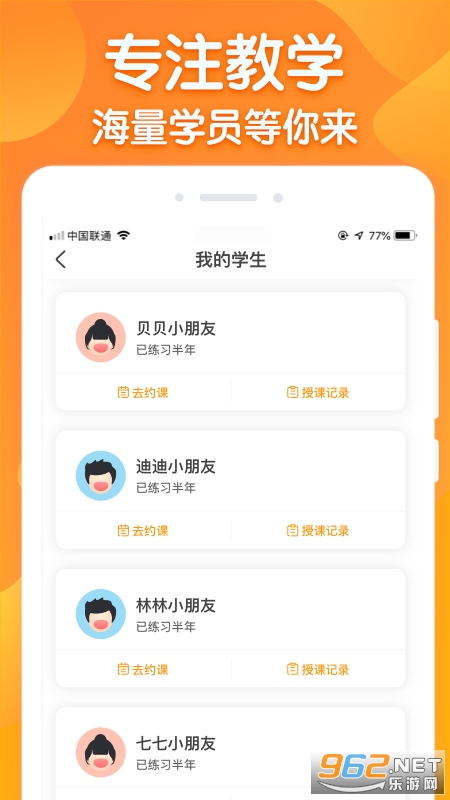 来音练琴是一个线上乐器陪练平台,老师可以在平台接受学生的约课,也可以邀请自己原有的学生到平台上私教课。