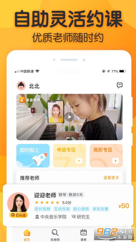 一款好用的在线乐器陪练平台,通过和老师一对一的视频教学,让孩子在家里面就能够接受专业的指导,同时还有着强大的师资力量,你可以自由选择不同的老师,推荐给有需要的用户。