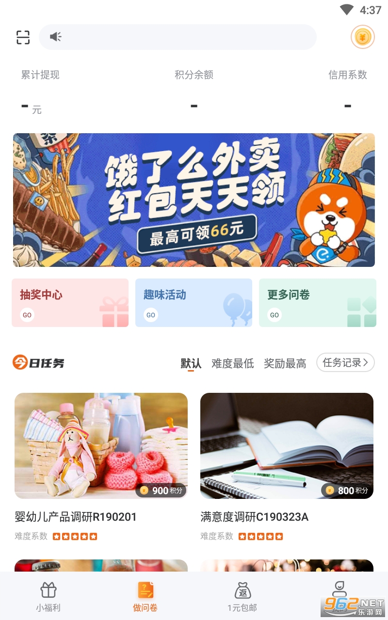 4、做问卷可赚钱,用户只需简单的完成问卷的选择题就能赚到钱;