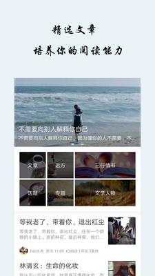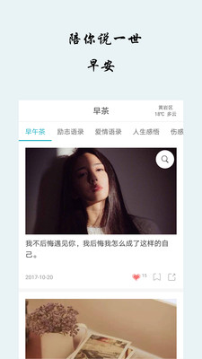 早安心语是一款文艺、知性的心灵鸡汤APP。这里没有绚丽的页面,也没有复杂的社交,这里专注于文字的美,是属于你的私密心灵小屋。希望你安下心来,细细的品读。愿来年收到你的信,那是与之前截然不同的人。