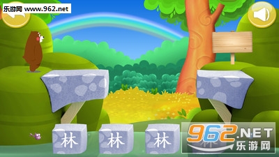 3、组词:根据语音的提示,选出正确的汉字进行游戏,帮助小熊过桥,学习汉字和词语;