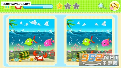 专为孩子设计的找茬!超有趣的海洋世界,动物乐园!孩子从小就要锻炼观察能力,养成归纳整理的好习惯。这里可以训练孩子分析部分与整体的关系,学会从整体到部分的分析能力,提高识别能力,锻炼逻辑思维力、形象思维能力!适合孩子和家长共同娱乐,在有趣的游戏过程中,在轻松愉快的气氛中获得知识,开发智力,促进亲子关系。