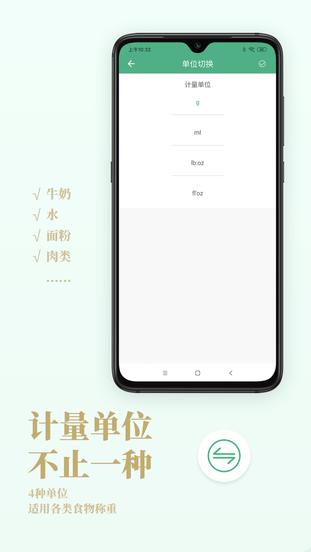4种单位,适用各类食物称重