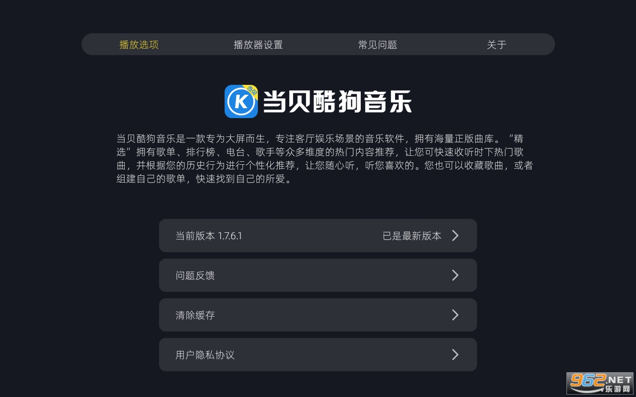 《当贝酷狗音乐电视版》是一款用起来非常不错的电视应用软件,软件的功能性也还是很不错的,丰富的曲目让用户们自由的去选择,可操作的功能性也十分的丰富,用起来还是很独特的哦,感兴趣的亲们赶紧下载吧。