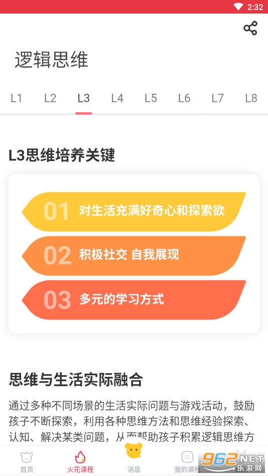 逻辑思维课程以逻辑问题、科学与工程的问题为载体,综合三大知识模块(逻辑关系、建模分析、益智策略)配合历史文化、趣味故事、思维游戏和特色学具,让孩子系统的学习提升逻辑分析能力、空间想象能力、动手操作能力、迁移应用能力等12种核心能力的思维方法的培养体系。在火花可以学习到20种思维方法,这些思维方法可以提升孩子的思考能力和学习效率。