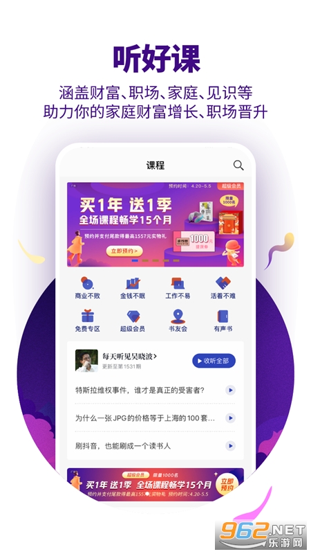 由大学教授、业内专家、媒体人等作为授课老师,系统搭建商业、财富、职场、人文、见识等方向系列课程,从入门到高阶,助力你的家庭财富增长和职场晋升。