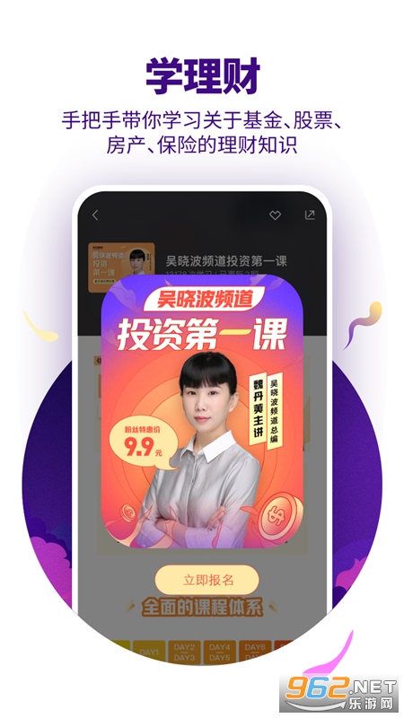 《吴晓波频道投资第一课》,7天学习社群,频道总编亲自教学,涵盖基金、股票、买房、保险等热门投资,干货分享+直播答疑,帮你形成正确的投资价值观、路径、方法。