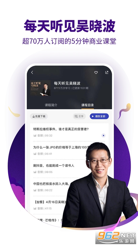 超70万人每天7点准时收听的商业日课,涵盖宏观经济、商业解读、企业经营、投资理财四大模块,跟随吴晓波的朋友们,学习企业家的商业思维,把握时代趋势,发掘当下投资机会。