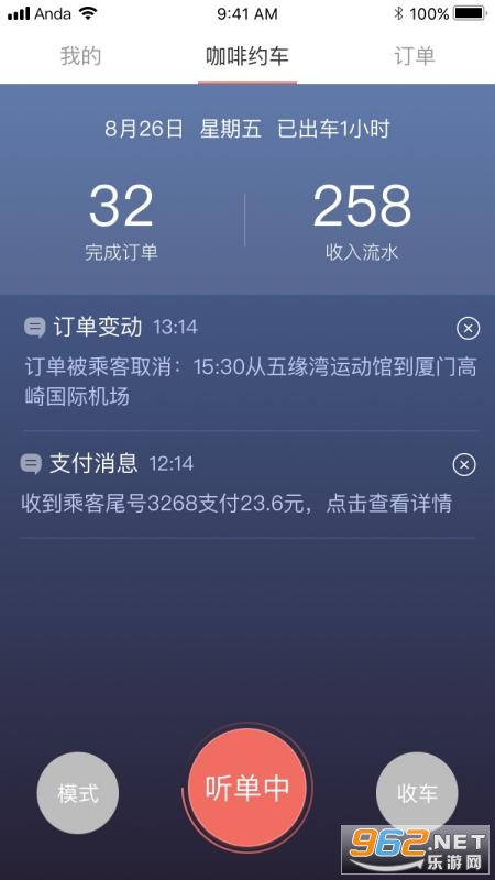 咖啡约车是一款满足广大司机用户接单需要的打车软件,司机可以在线进行抢单,可以实时看见订单的变动情况、支付情况,每日的收入流水也是看得见的,只要完成订单就可以获得相应的收入,每天的收入状况会自动来统计。