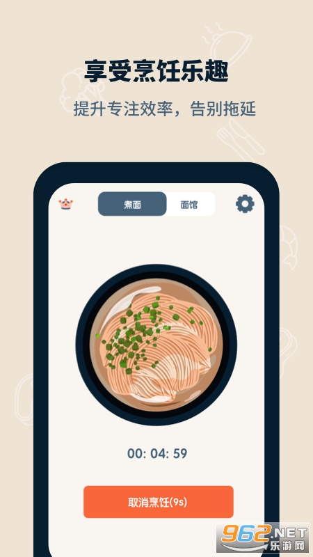 专注面馆,自律人生,从煮一碗面开始,可以让您专注于当前的目标,大大提高了目标任务的完成效率,让您摆脱手机的控制,专心于眼前的事。对于学习,工作,运动,冥想,读书,小憩等等各类需要专注的场景都提供了良好的帮助。