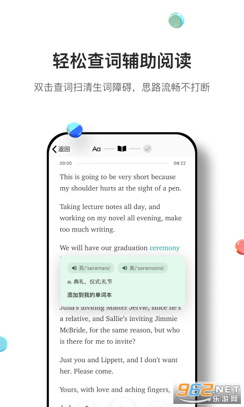 · 即指即译,单词双击就能查释义,更有发音收录助力口语提高