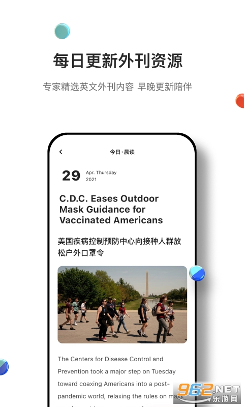 每天还将会实时更新出海内外各种英语外刊上的阅读资源,让用户们及时了解到非常完整的学习信息清理。每天都会拥有科学性的学习方案,帮助用户们加大对于单词上的各种理解范围咯。有需要的用户们快快动手下载吧。