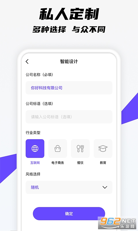 输入您的品牌名称、描述、类别,即可自动生成多个logo供您选择