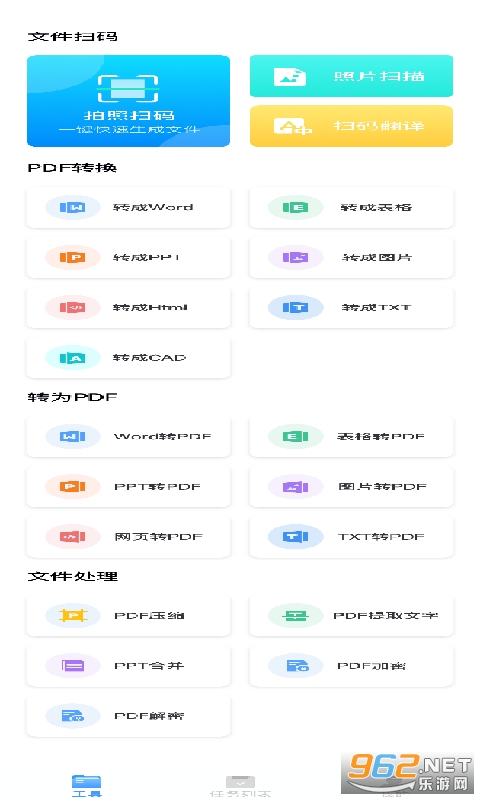 支持PDF转Word、Excel、PPT、JPG、PNG、TXT等格式,以及Word、Excel、PNG、JPG、PPT等格式文档转换为PDF