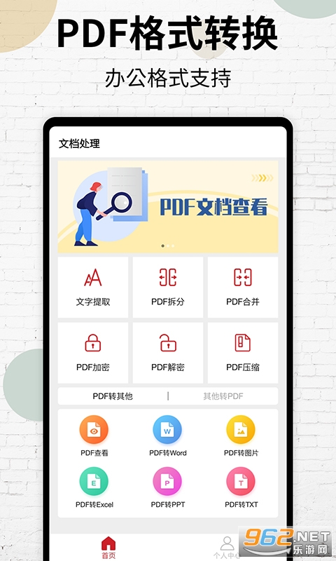 PDF转换专注为用户解决文件格式的转换难题,可一键完成PDF转换Word、JPG图片、PPT、Excel、TXT,以及Word、PPT、图片、Excel转PDF,pdf阅读功能在内的多达十种文件格式的相互转换;