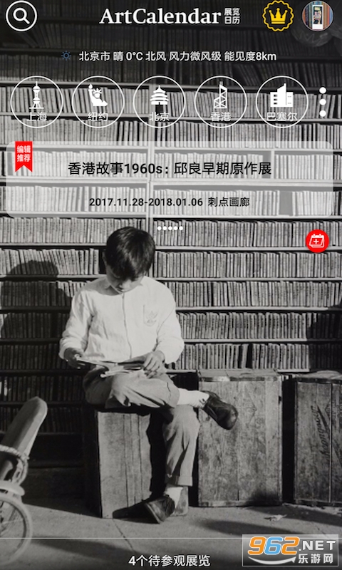ArtCalendar 是一款全球艺术展览日历 APP,它帮你搜罗世界各地美术馆、双年展/三年展、艺术博览会与画廊的展览信息,让你时刻掌握最新鲜的艺术资讯。系统支持与手机自带日历无缝连接,一键好友分享。 无论你身处所在城市还是旅行目的地,ArtCalendar 都能通过精准定位,快速开启城市天气预报,帮助你制定观展计划。