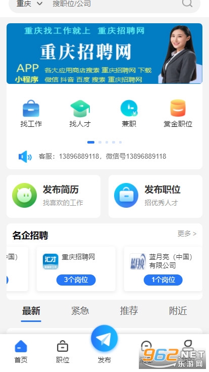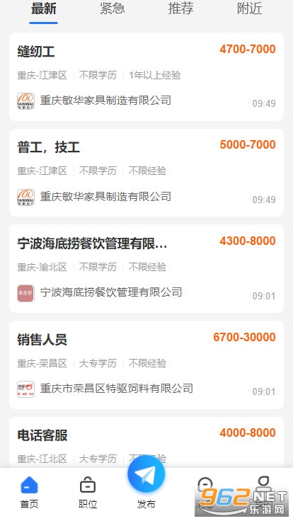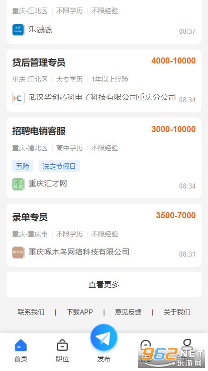 重庆招聘网是重庆本地招聘求职的综合APP。求职者可对企业职位进行精准匹配,快速浏览只为你信息,随时随地和企业HR在线直聊,直接了解招聘信息。