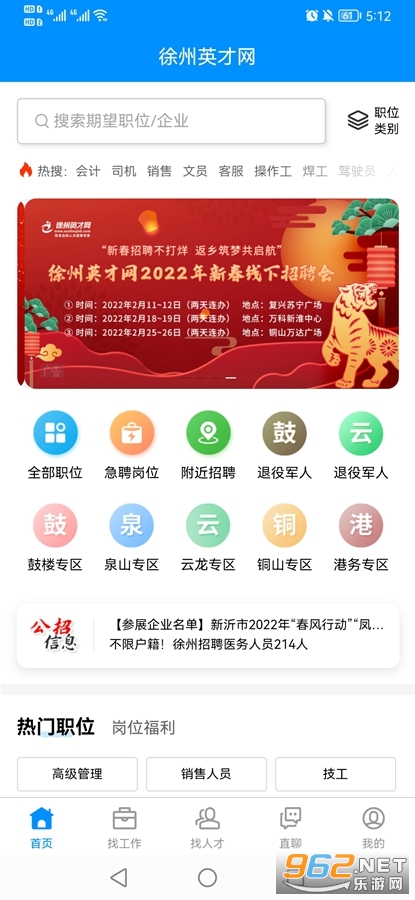 《徐州英才网app》是江苏英才网络有限公司推出的找工作的软件,是徐州英才网的手机客户端,朋友们可以在徐州英才网app中去找工作也可以去找人才,有着众多的公司入驻,会计、销售、文员、客服、司机等大量的招聘岗位等着你来选择。