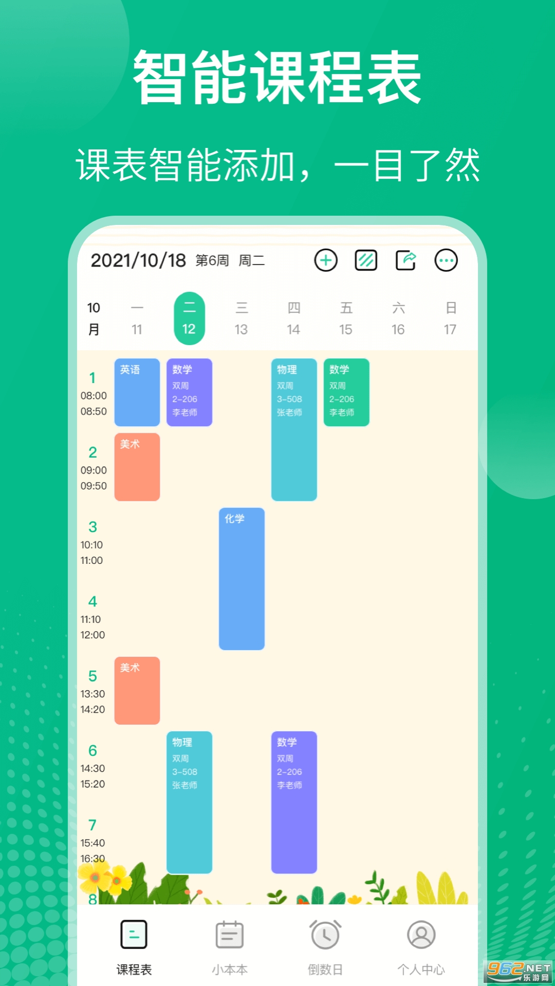 2、功能全面,除开课程表外,还贴心增加小本本和倒数日功能,学生常用功能一次搞定