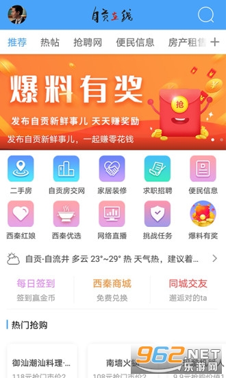 4、天气:自贡在线app结合当今地理位置将每日的最新平均气温状况开展展示。