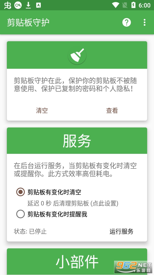 剪贴板守护是一款最新的非常好用的安卓手机剪切板app,可以在桌面创建小部件来管理剪切板,支持一键清空,支持在线查看和编辑,支持手机剪贴板内容的查看和清除,是一款非常实用的小工具。
