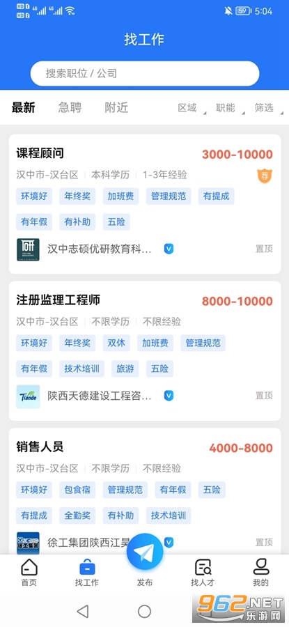 招聘与找工作的平台,想要在汉中工作的朋友可以在平台中去寻找自己满意的工作,有着互联网、销售、程序员等众多的工作岗位,企业也可以在软件中发布招聘信息等,有需要的朋友可以下载试试。