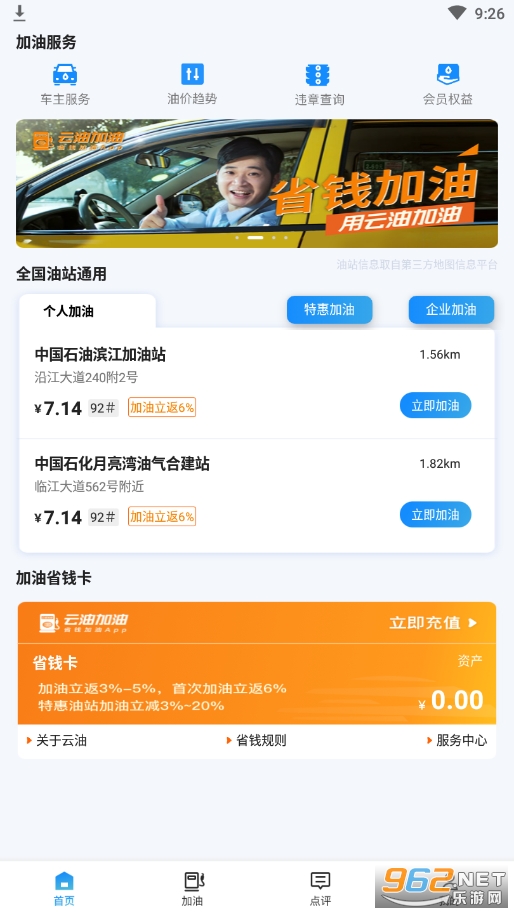 全国所有油站每次加油多赠2%,叠加部分油站0.2-1.5元/升的优惠,让您享受加油折上折,人均每年节省超1000元。