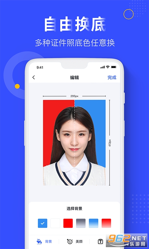 为你智能一键美颜生成证件照,一个好的印象就要从证件照开始。强大的人像识别算法,一键快速美颜,自动贴合人像,智能抠图处理,呈现细节,给你一键剪裁证件照,快速、轻松制作出证件照。