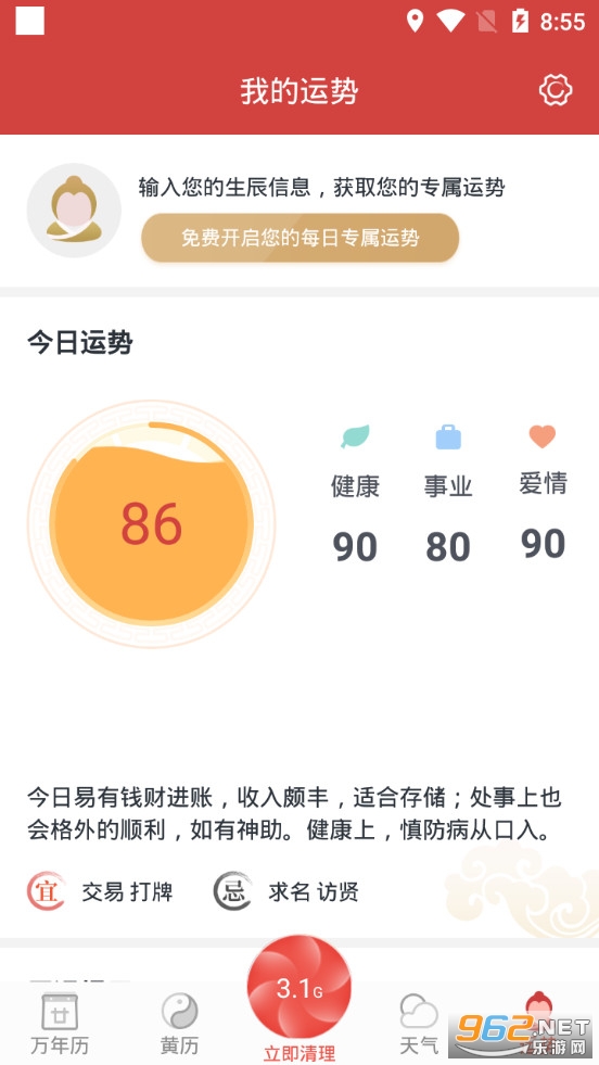 2、黄历:挑选吉日 一步到位,趋吉避凶,享受美好生活。
