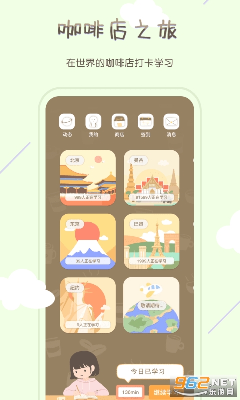 专注咖啡馆是一款在线专注学习APP,模拟了各地的咖啡店,可以选择在不同的咖啡店进行沉浸式的学习专注。
