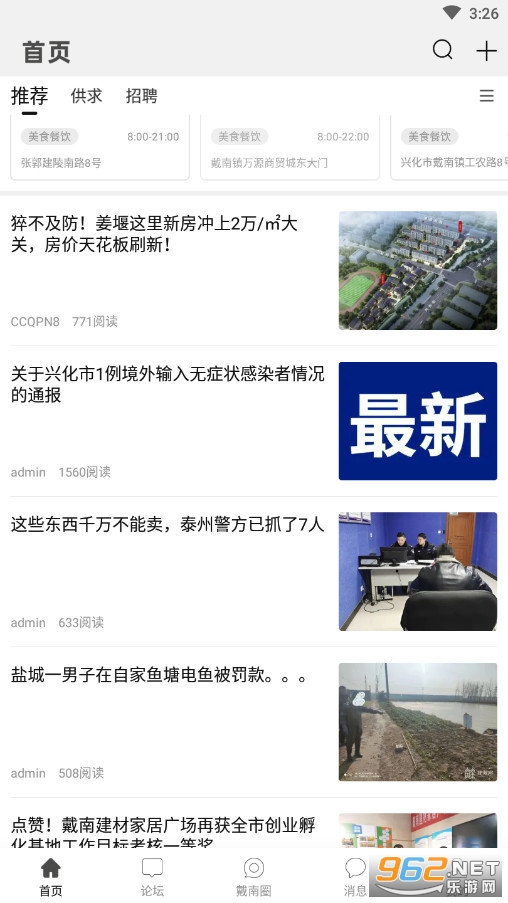 《戴南论坛》是由兴化市戴南在线文化传播有限公司开发的戴南本地生活论坛手机客户端,在这里你将了解戴南本地的各种资讯新闻,以及不同的防疫政策,同时也是戴南人的网上家园,在这里分享生活的趣事,现在就来试试吧!