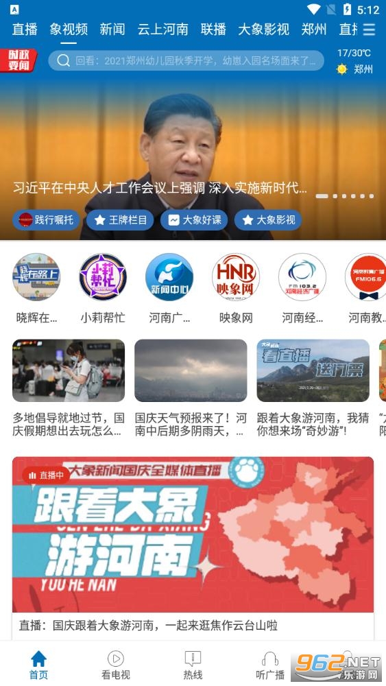 大象新闻客户端是由河南广播电视台主办的省级新闻综合客户端平台,内容以新闻为主,涵盖广播、电视、图文、资讯、直播、评论等,立足本土,辐射中部,面向全国。