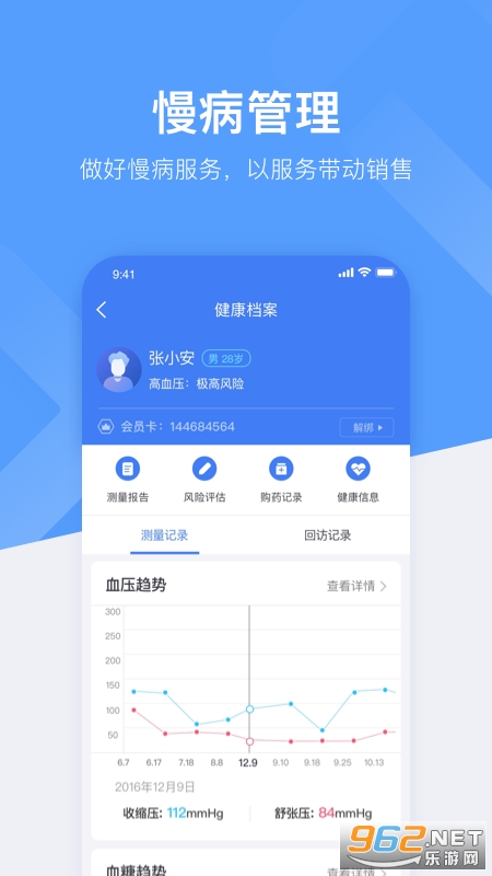3、顾客管理:通过APP,药店人可了解会员的健康情况、购物习惯。并与会员进行直接沟通。助力药店人维护顾客关系、提升业绩