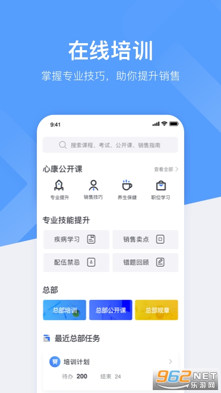 1、专业学习:药店人可在心康助手上学习公司总部发布的课程并进行评测,同时还可自由学习专业的公开课程。助力药店人提高专业水平