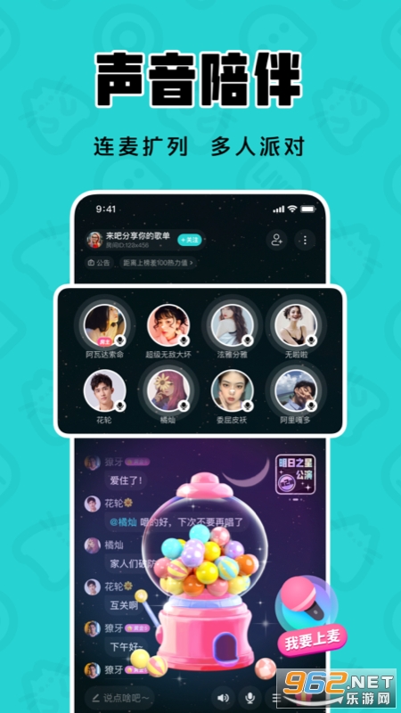 语音连麦,边聊边唱,各种语言小游戏,欢乐互动,等你一起来抓鸭子~