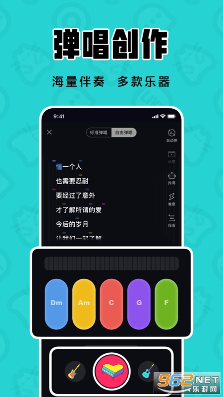 不懂乐器也能自弹自唱,丰富曲库,多款乐器,随时随地,动动手指,轻松创作~