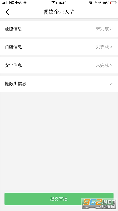 3、只需要完成证照信息,门店信息,安全信息以及摄像头信息的填写就可以申请入驻。