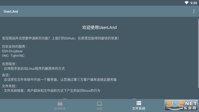 《userland》是一款比较好用的手机工具,能够为你的手机创造出运行GNU/Linux的条件。无需root,轻松设置ubuntu和debian,直接通过手机来控制linux,超级方便,使用简单,有需要的话就来下载吧!