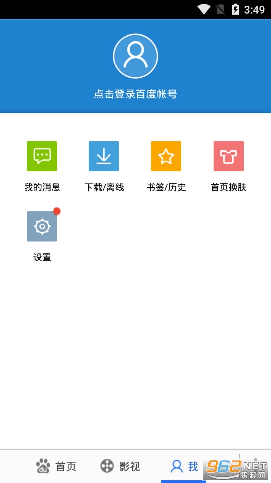 《百度HD安卓版》是百度推出的一款手机浏览器软件,是百度的HD版本,界面非常的简约,只有着首页、影视和我的三个栏目,可以在首页中进行搜索,在影视栏目看各种影视视频,在我的栏目可以进行一些设置,比如换首页皮肤、查看下载历史和书签等。