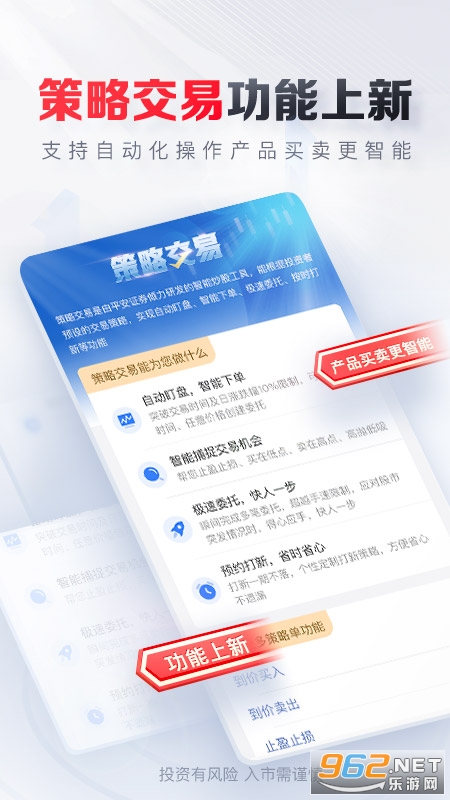 -策略交易一期五大功能:到价买入、到价卖出、止盈止损、股票预约打新、场内基金定投。