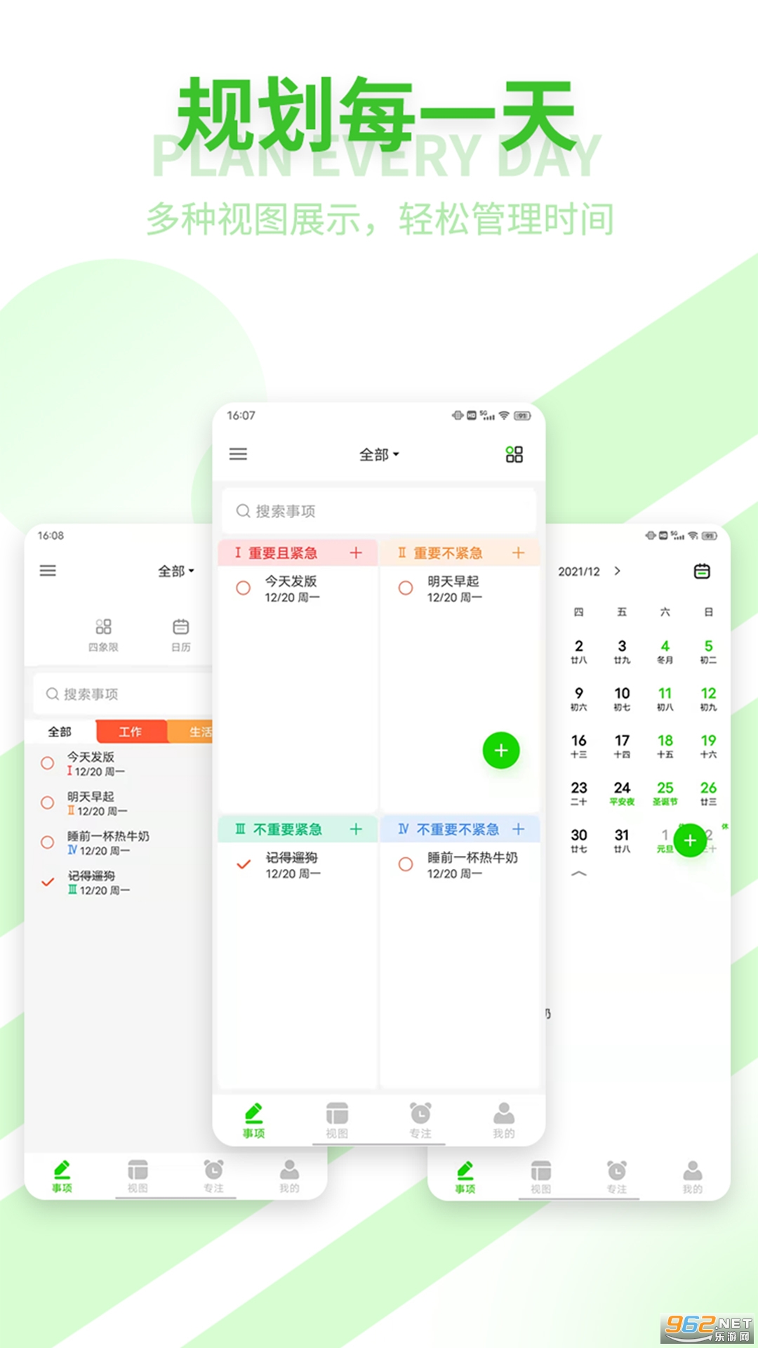 时间管理:每日每周每月,多种视图展示,帮你规划每一天