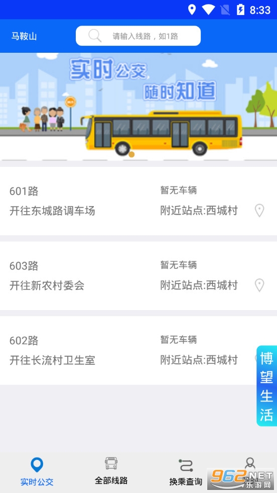 博望公交APP是由马鞍山市横望交通有限公司打造的博望区公交实时信息查询平台,用户可以通过自己的手机,随时随地查询博望区各公交车辆的实时位置、线路信息、换乘信息等,方便用户适时安排自己的乘车计划,大大提高了出行效率,让市民出行更绿色、更方便、更快捷。