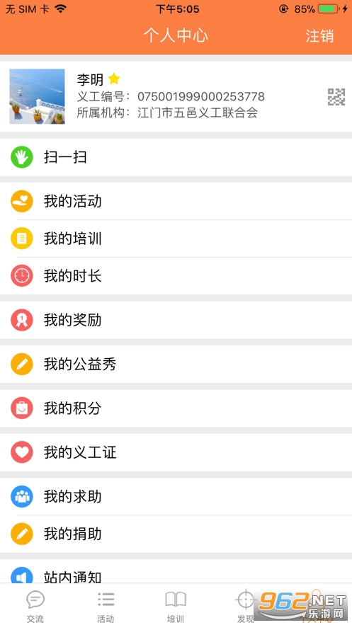 义工个人通过江门义工APP个人账号扫一扫功能,扫描活动结束二维码进行签退。
