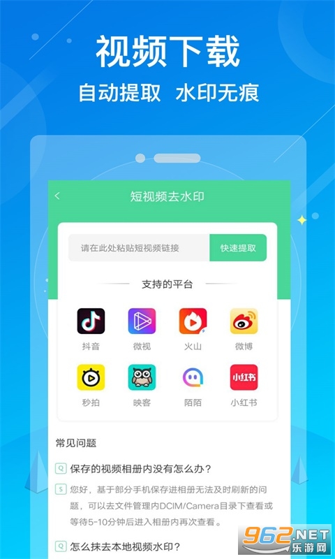 4、视频提取:支持多个第三方视频app一键解析提取无水印视频