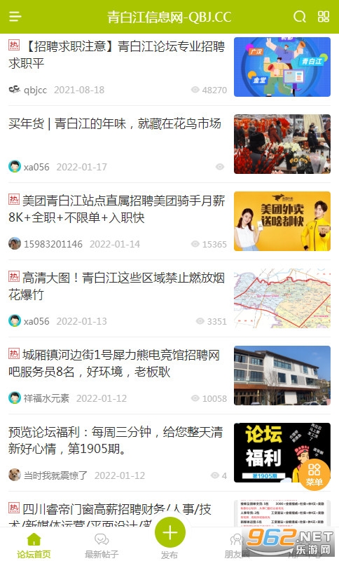 青白江论坛是青白江地区家喻户晓的本地门户网站!涵盖青白江区吃喝玩乐,樱花节,二手交易,同城交友,法律服务等版块的交流平台。我们主旨是:为青白江百姓提供优质的网络服务,做一个有生活态度的青白江门户网站!
