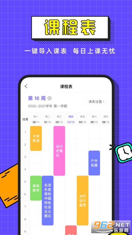 「课程表」一键导入课程表,随时随地查教室,还可享受蹭课自由。