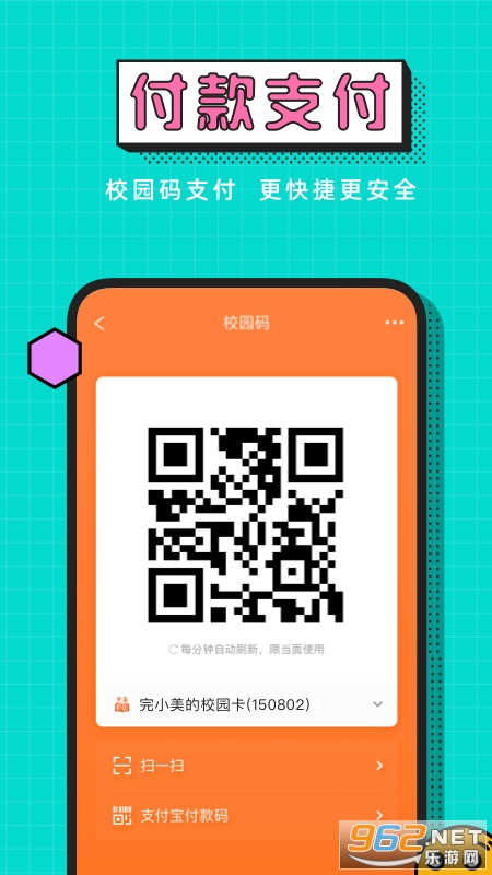 「付款码」即用即走,支持使用支付宝付款码消费,安全便捷。